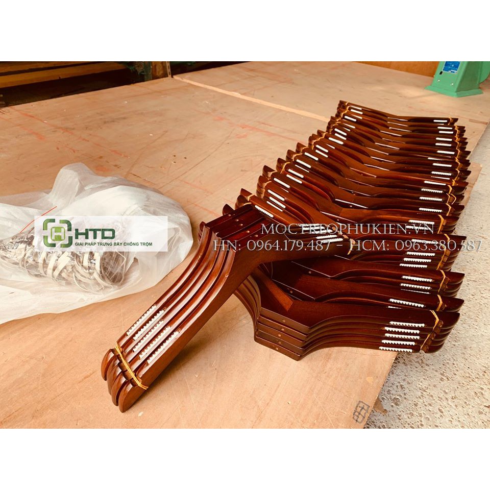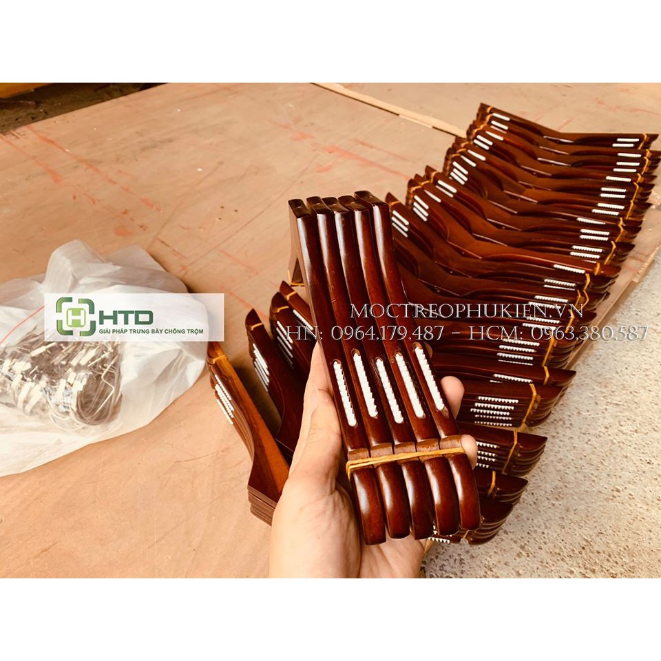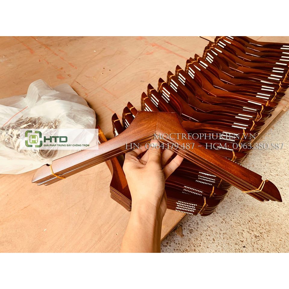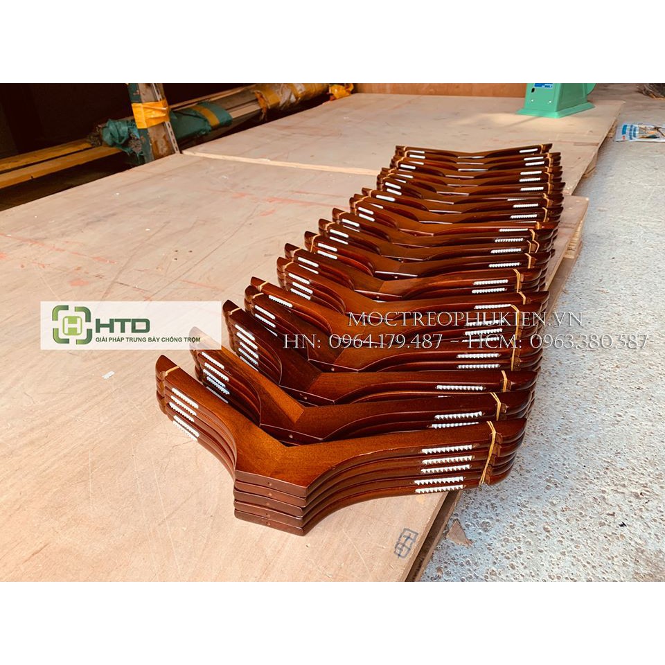 Móc gỗ treo quần áo MG-B001 được thiết kế miếng cao su chống trượt hai bên giúp dễ dàng treo áo trưng bày tại cửa hàng mà không lo bị trơn trượt.