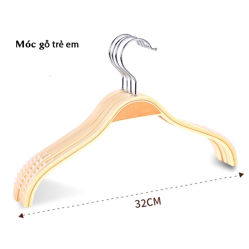Móc Gỗ Treo Quần Áo - Gỗ Ép Vai Đệm Trẻ Em 32cm ( Bộ 10 Móc)