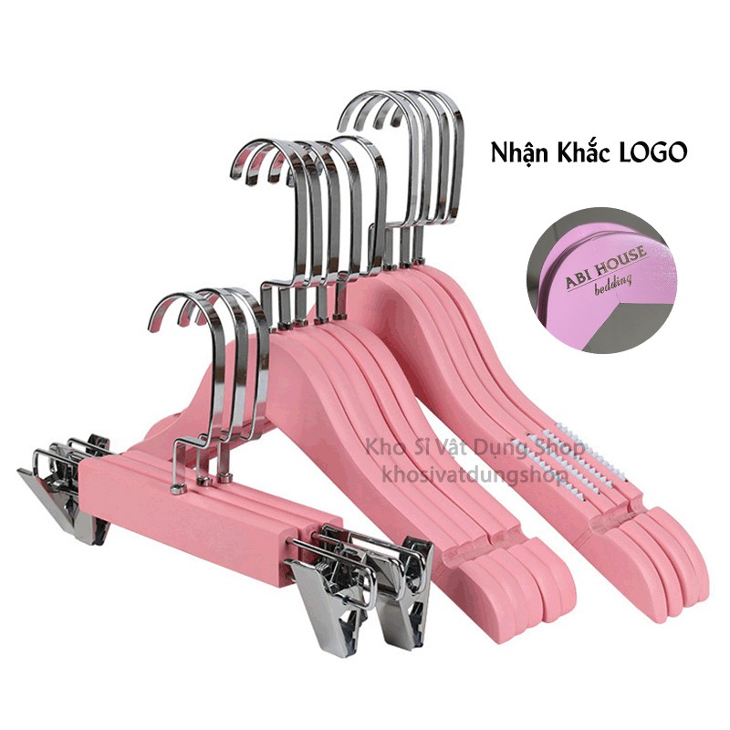 Móc Gỗ Treo Quần Áo KTN Hồng 44.5cm (10 móc)Móc gỗ hồng treo quần áo có vai đệm chống trượt, thân móc được sơn phú màu hồng 2 lớp bóng mịn. Đầu móc sáng bóng xi mạ hạn chế gỉ sét khi sử dụng thời gian dài. Móc gỗ hồng thích họp cho việc treo móc quần áo ở các shop thời trang phong cách trẻ trung, shop quần áo trẻ con,...