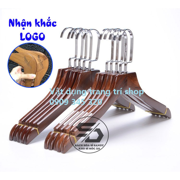 Móc gỗ treo quần áo, móc gỗ nâu cao cấp 44cm ( bộ 10 cây )