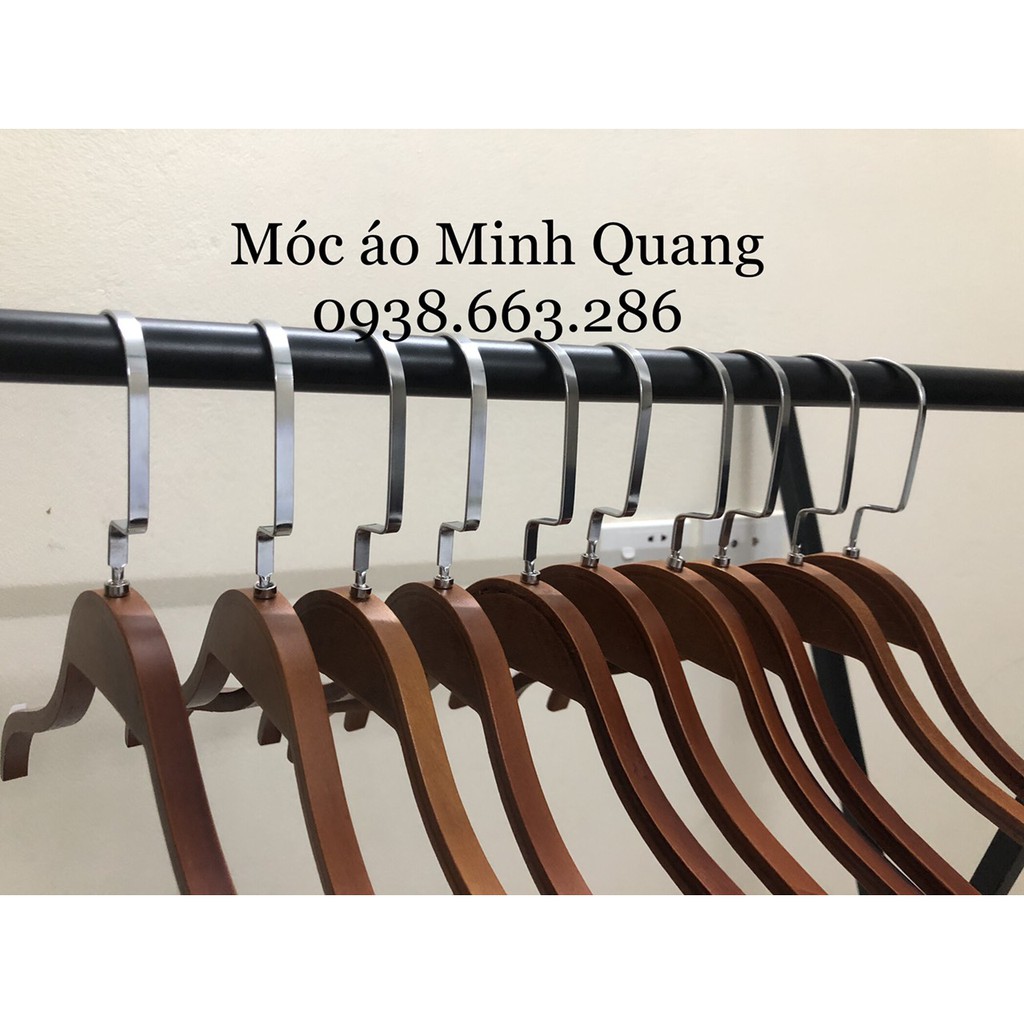 móc gỗ treo quần áo-móc gỗ treo quần áo màu nâu-đầu móc vuông dẹt inox sáng-móc gỗ dùng để treo quần-áo-váy,...