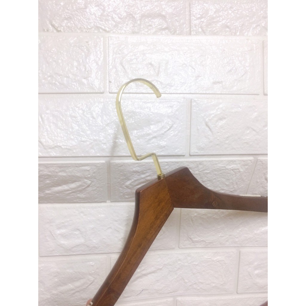 Móc gỗ treo quần áo nâu vai đệm 44.5cm đầu móc dẹp vàng( bộ 10 cây )