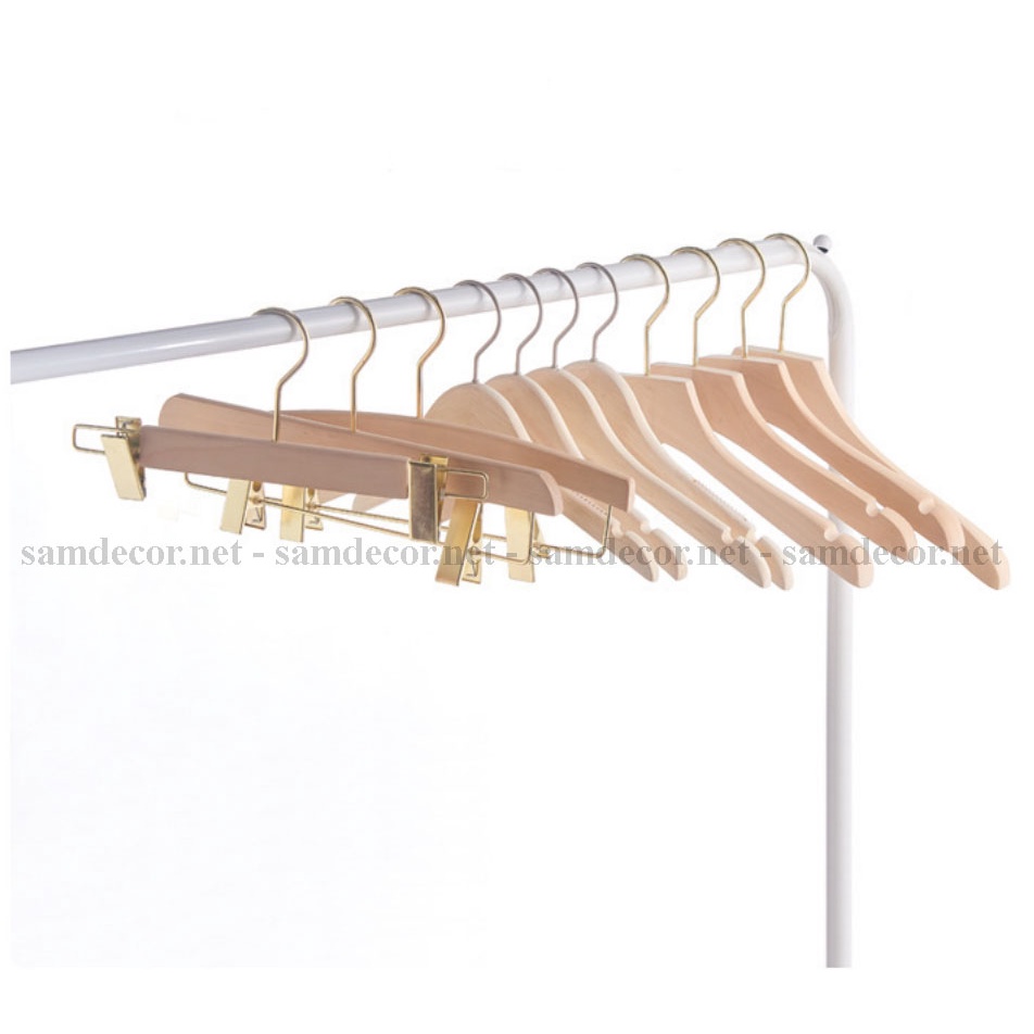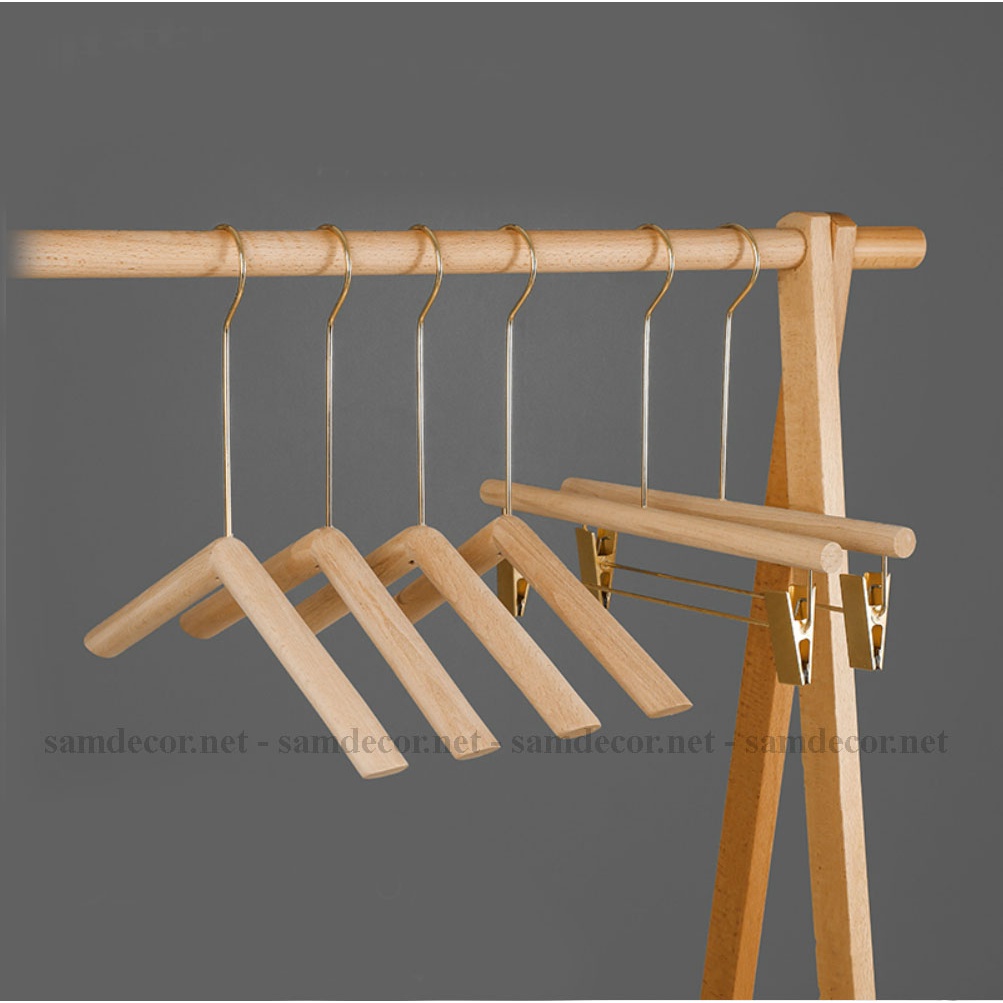 Móc treo quần áo gỗ phong cách vintaget độc đáoChất liệu: Gỗ sồi đặc, móc inox chống rỉ đặc biệt, kẹp quần bằng inox rất chắc chắn