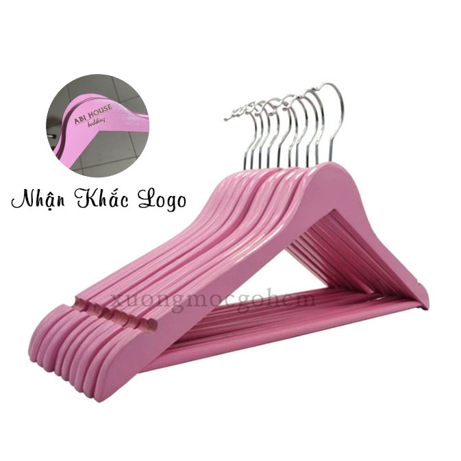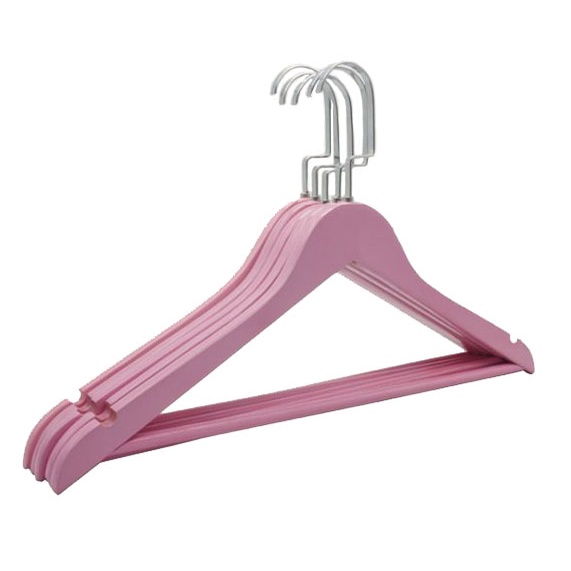 Móc gỗ thông cao cấp sơn phủ màu hồng có thang ngang2 Bên vai thiết kế rảnh sâu treo áo dây chống tuột