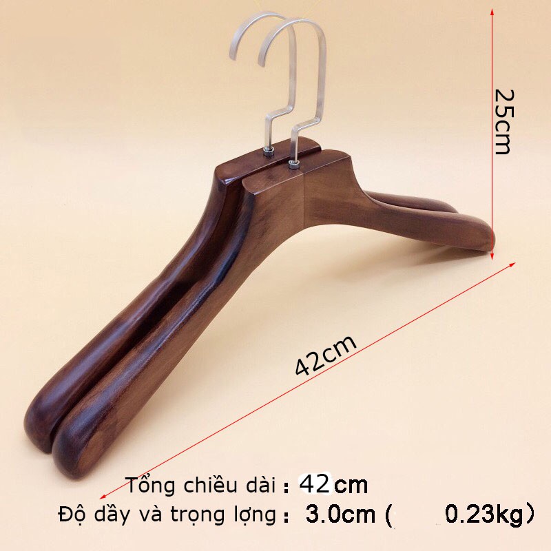 Móc gỗ vest chất liệu gỗ nâu cao cấpBản dầy 30mm, tổng chiều dài 42cm