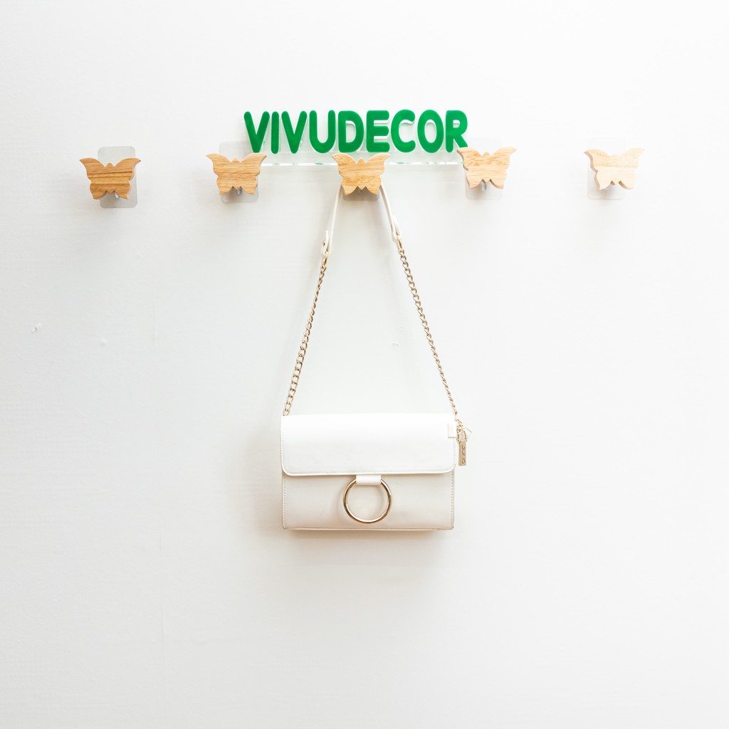 Nhà cửa & Đời sống > Sắp xếp nhà cửa > Móc treo || Móc Gỗ Vivudecor Hình Con Bướm Treo Tường Đa Năng Vừa Dán Vừa Khoan Bắt Vít, Móc Treo Đồ Dùng Tiện Ích Sang Trọng.Còn hàng