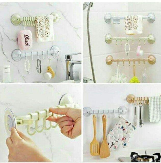 THANH MÓC HÚT CHÂN KHÔNG 6 MÓC TREO ĐỒ NHÀ TẮM, BẾP - MIAN MARTDụng cụ treo đồ đa năng được thiết kế nhỏ gọn, thiết thực cho mọi nơi.