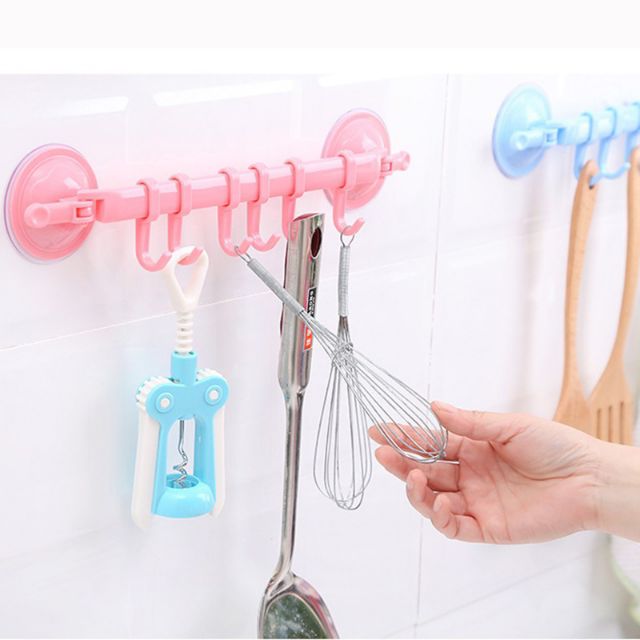 Thanh móc hút chân không 6 móc treo đồ nhà tắm, bếp - MIAN MART