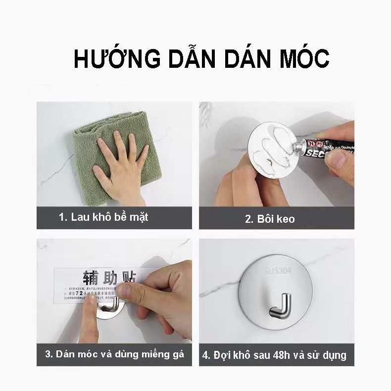 Móc INOX 304 Treo Đồ nặng, treo thớt, nồi niêu INOX 304 [CHỐNG NƯỚC, CHỐNG RỈ] Dán Tường Gạch, Men, Kính
