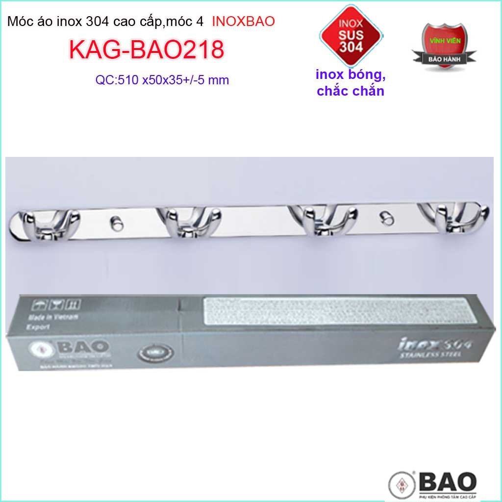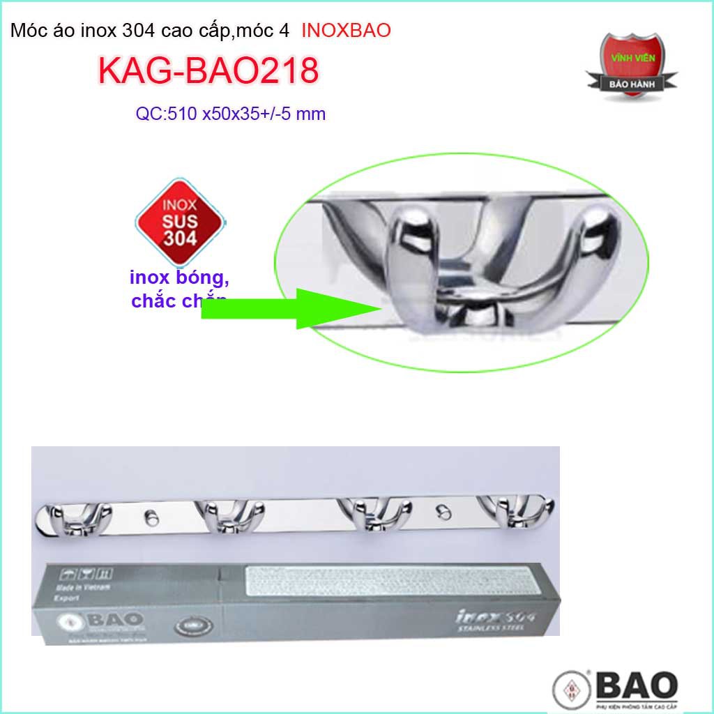 Ưu điểm: Móc treo đồ cao cấp Inox Bảo, móc áo phòng tắm Inox SUS304 KAG-BAO218 thiết kế hiện đại, có 4 móc nên có thể dùng móc đồ trong nhà tắm, móc đồ trong phòng ngủ, móc treo đồ nhà bếp