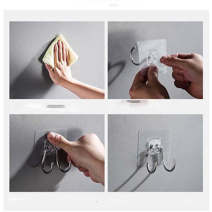 - Móc dán tường chịu lực, dùng được trên mọi bề mặt: tường, tủ quần áo, tủ lạnh, mặt kính...