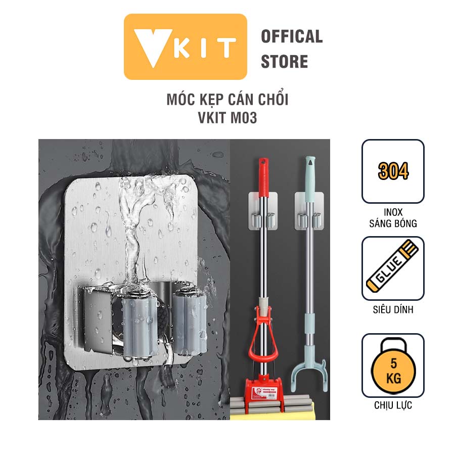 Nhà cửa & Đời sống > Sắp xếp nhà cửa > Móc treo || Móc inox kẹp giữ chổi dán tường Vkit chống nước có thể chịu lực lên đến 4kg M03Còn hàng