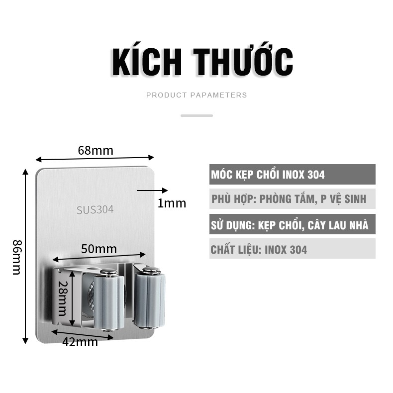 Tên sản phẩm: Móc inox kẹp giữ chổi dán tường Vkit- có thể chịu lực lên đến 4kgChất liệu : Inox 304 chống gỉ