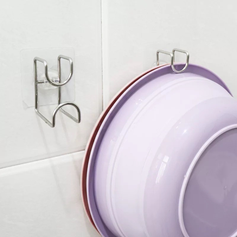Móc Treo Chậu - Móc Inox Dán Tường Nhà Tắm, Treo Thau, Chậu Giặt, Móc Treo Đồ Đa Năng, Không Khoan Đục- Tên: Móc treo thau chậu inox đa năng gắn tường