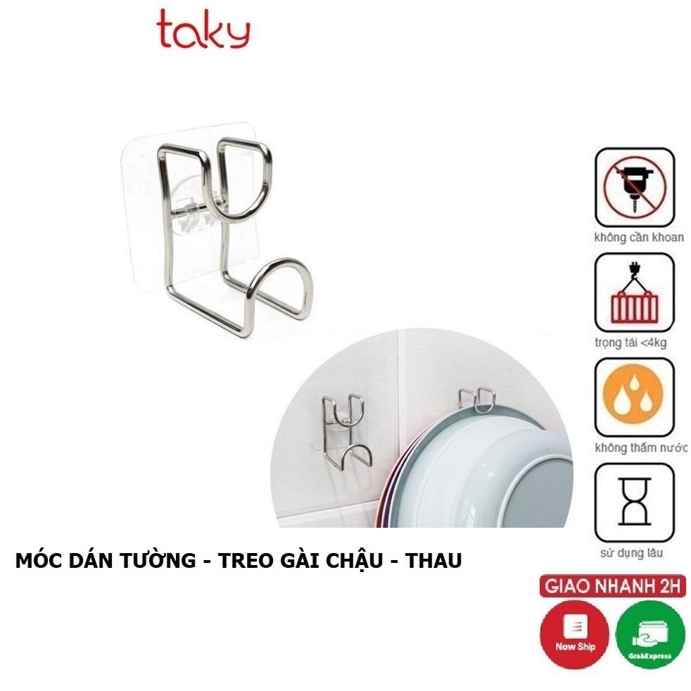 Móc Inox - Taky, Treo Thau, Chậu Dán Tường Nhà Tắm, Dán Tường Chắc Chắn Với Miếng 3M, Không Khoan Đục - 2013