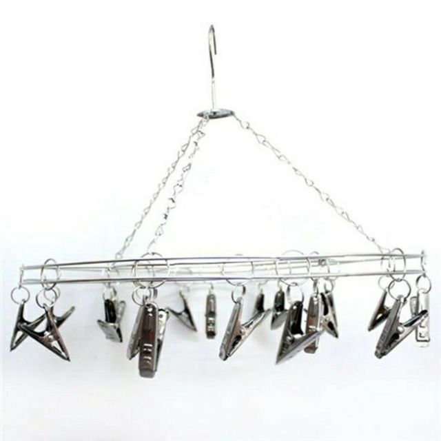 Móc chùm bằng innox,có màu trắng bạc, sản phẩm có 20 móc, thuận tiện Cho việc phơi, khăn, ta, tất, khẩu trang... VvSản phẩm rất bền va chắc chắn