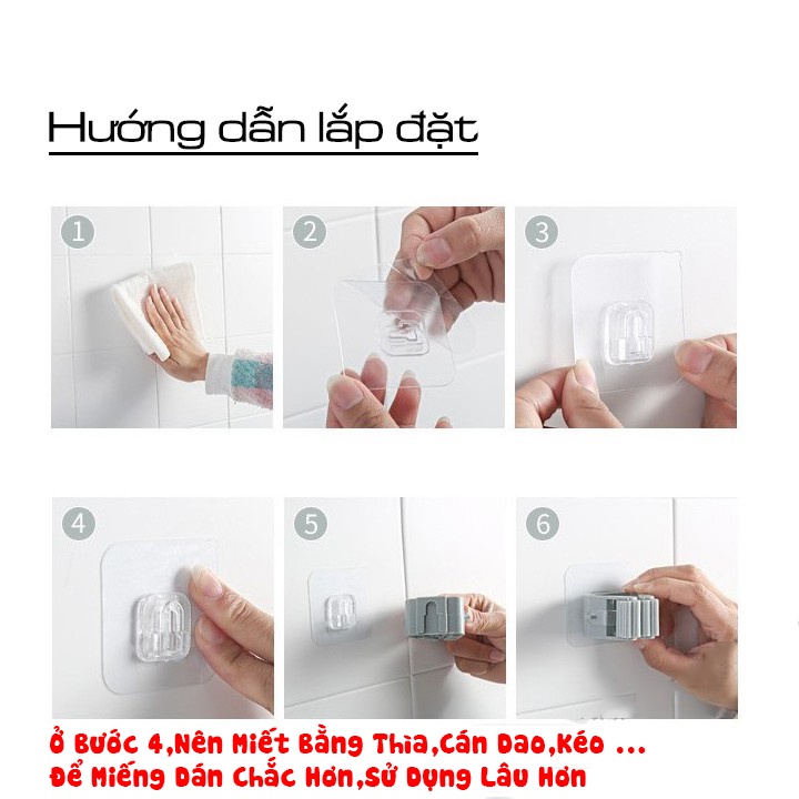 -Móc cây lau nhà không cần phải khoan tường gắn đinh, dán móc bằng keo 2 mặt, khả năng chịu lực tốt đến 6 kg.