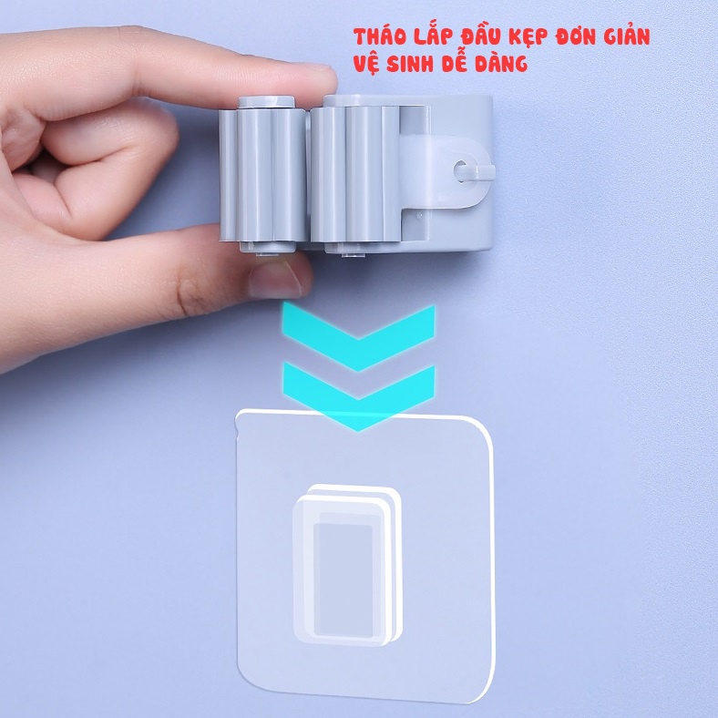 - Móc kẹp chổi dán tường giúp bạn giữ cây lau nhà luôn khô ráo, không làm hư hại mặt gạch.