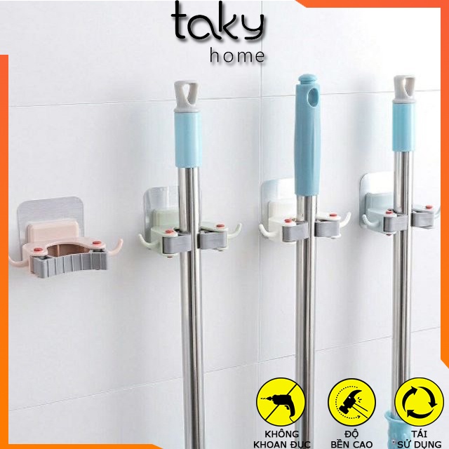 Móc Kẹp Dán Tường Treo Cán Chổi, Cây Lau Nhà Gắn Tường, Chắc Chắn, Tiện Lợi Cho Mọi Nhà -TakyHome 4029