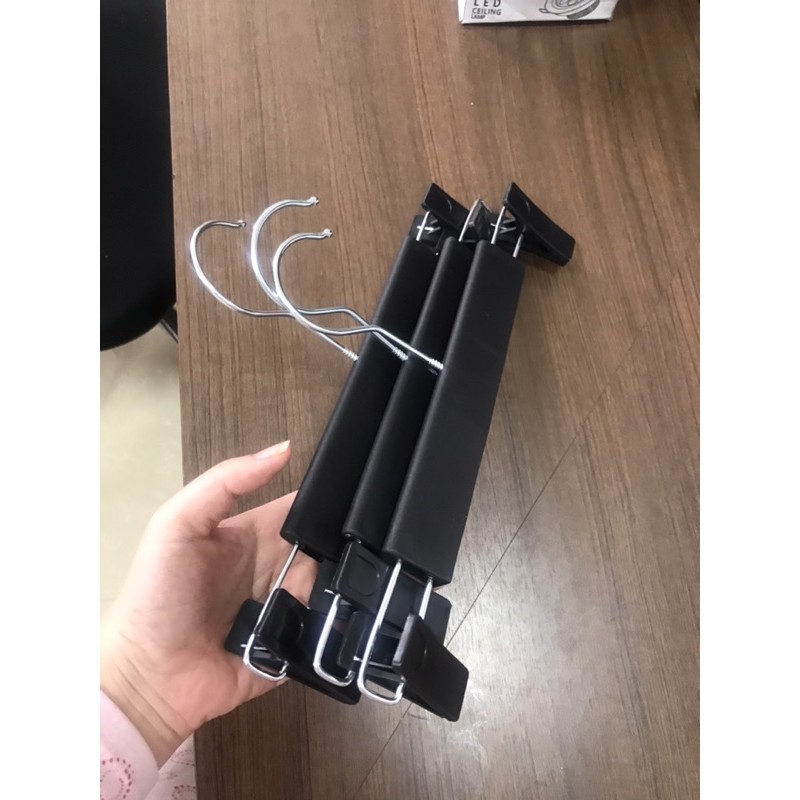 sản phẩm gồm 100c móc kẹp quần, chân váy nhựa đenđộ rộng điều chỉnh theo người sử dụng rộng 30cm