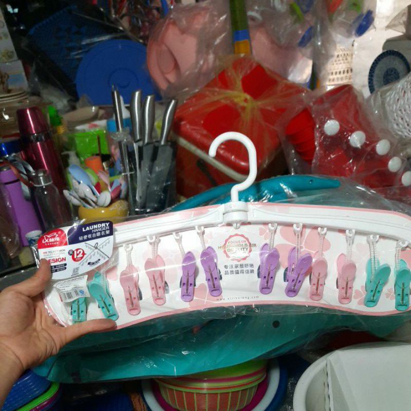 móc kẹp phoi quần áo chất liệu nhựathanh gồm 12 móc kẹp
