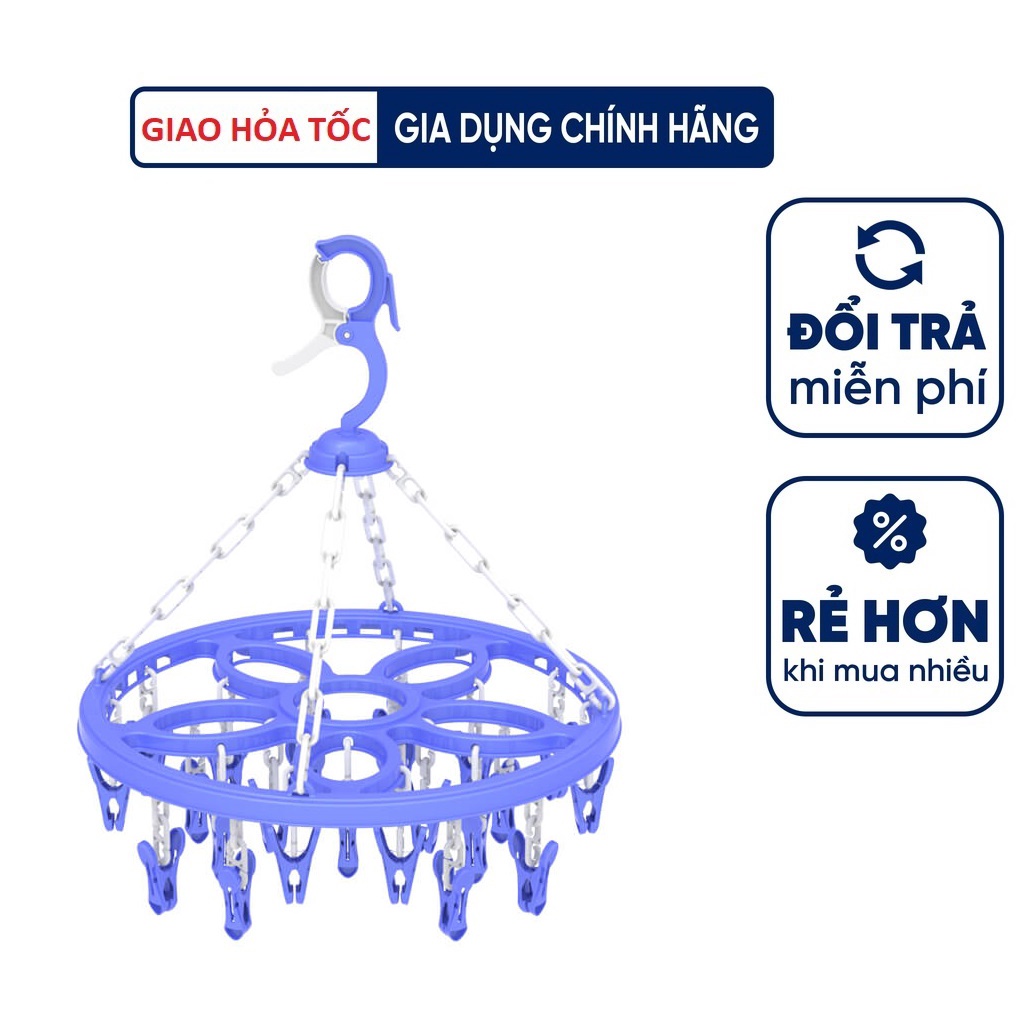 👉 Móc gồm 24 chiếc kẹp nhỏ dùng để phơi khăn tay, khăn sữa, tã vải, tất vớ, găng tay, khăn len, khăn mặt... rất tiết kiệm diện tích, đầu móc có khóa giữ cố định giúp cho móc cố định tại một điểm không bị bay hoặc rớt.