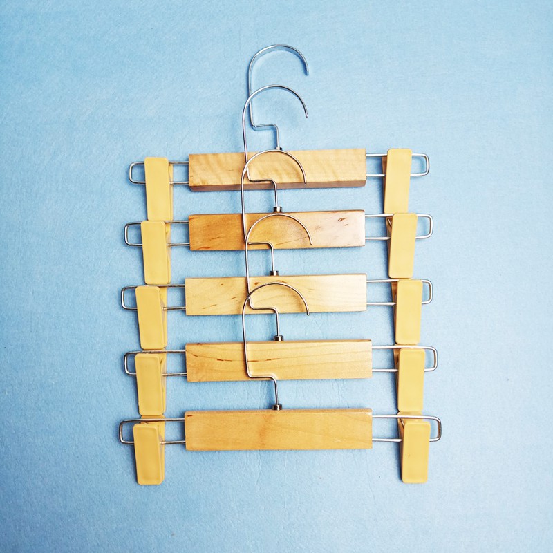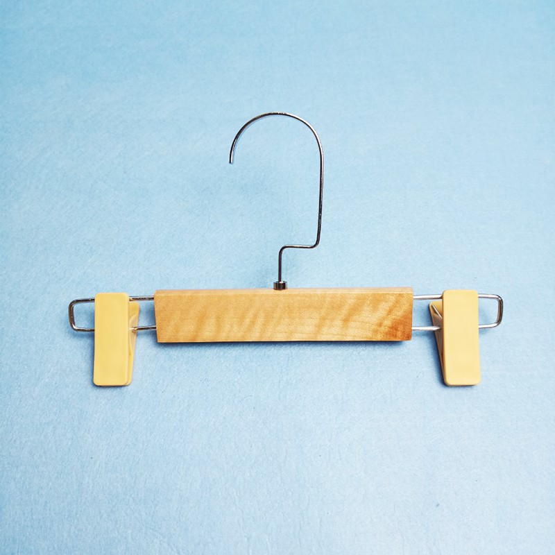 - Mô tả: Sản phẩm có thân bằng gỗ tự nhiên, dày 1.2cm, móc treo bằng inox, 2 kẹp bằng nhựa cứng. Sản phẩm dùng để treo các loại quần, chân váy, đồ lót... chuyên dụng trong các shop thời trang hoặc trong các gia đình.