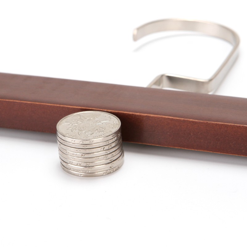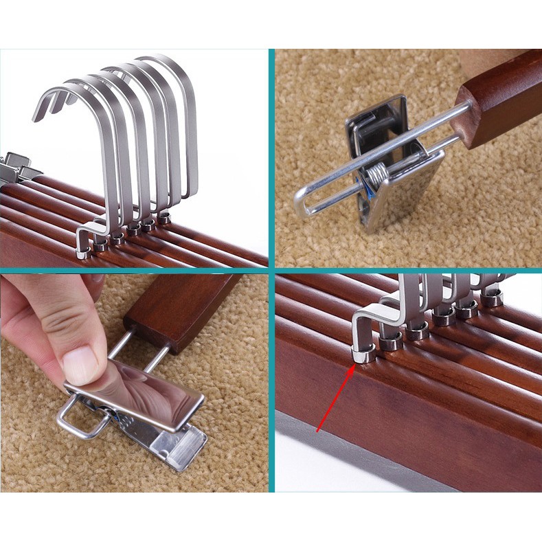- Chất liệu: Gỗ tự nhiên sơn phủ màu nâu, đầu móc và kẹp Inox. Phần gỗ được làm từ gỗ tự nhiên, dày 1.2cm chắc chắn, đầu móc vuông và đầu kẹp bằng Inox luôn bóng sáng, không bị xỉn màu cực sang.