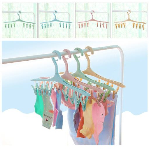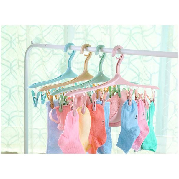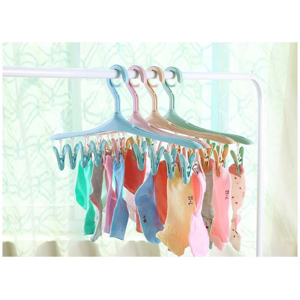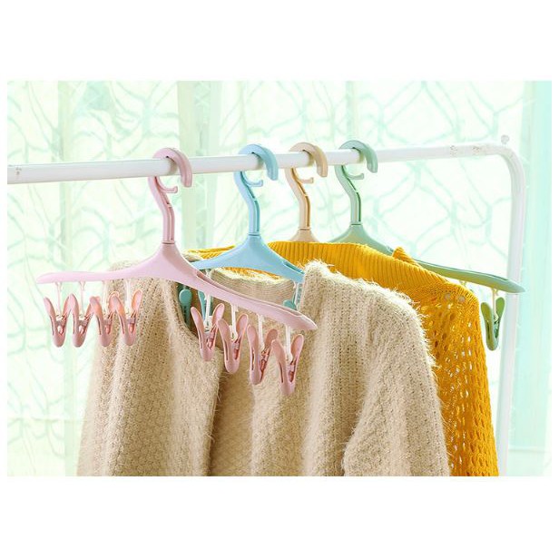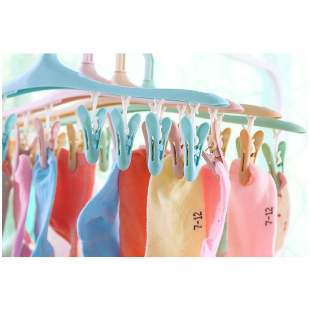 Móc treo quần áo đa năng với thiết kế lạ mắt và xinh xắn sẽ là giải pháp hoàn hảo nhất với dây phơi đồ áo chật hẹp của gia đình bạn.- Mỗi móc gồm 8 kẹp đối xứng, thân móc xoay được 360 độ.