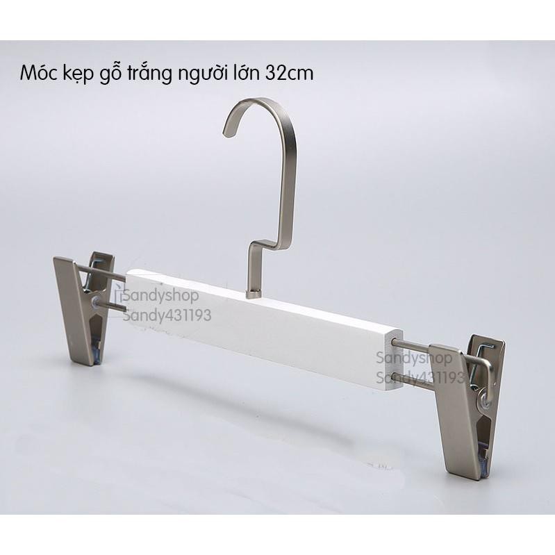 Nhà cửa & Đời sống > Sắp xếp nhà cửa > Mắc áo || Móc Kẹp Váy Quần Gỗ Trắng 32cm (1 móc)Còn hàng