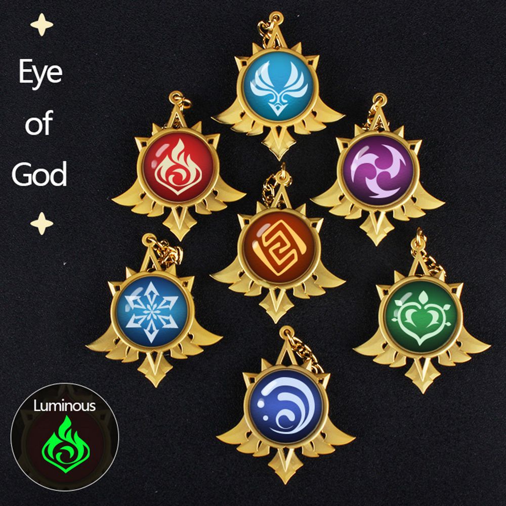 Móc khóa bằng kim loại có phụ kiện hình 7 yếu tố viên mắt thần thánh trong trò chơi Genshin với con mắt quỷ phát quang