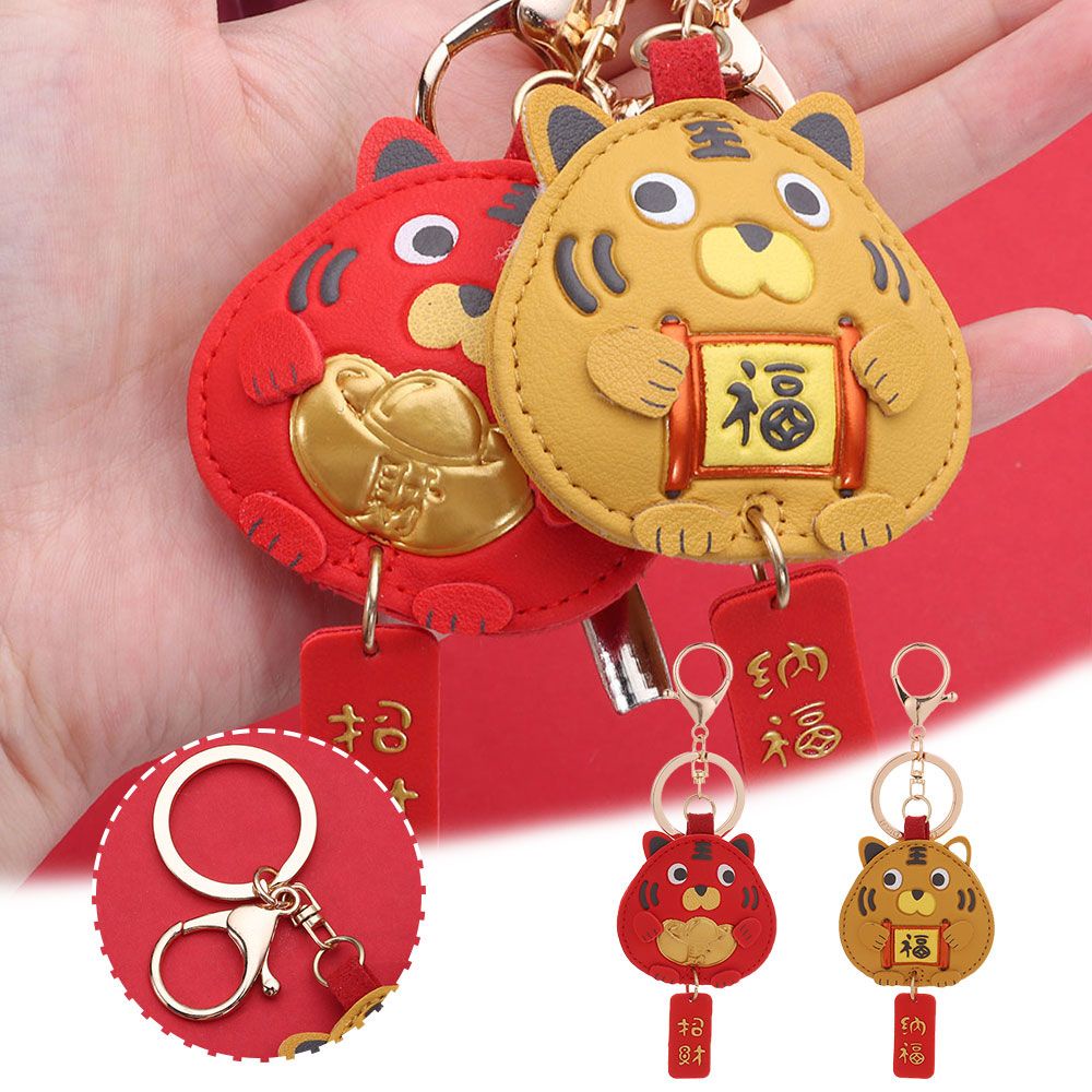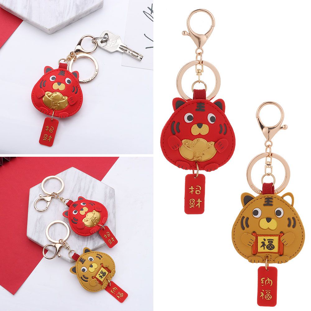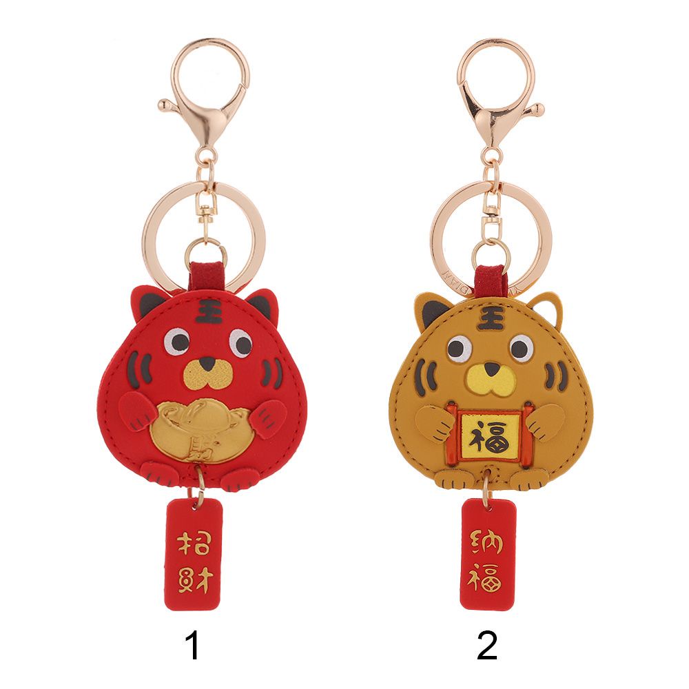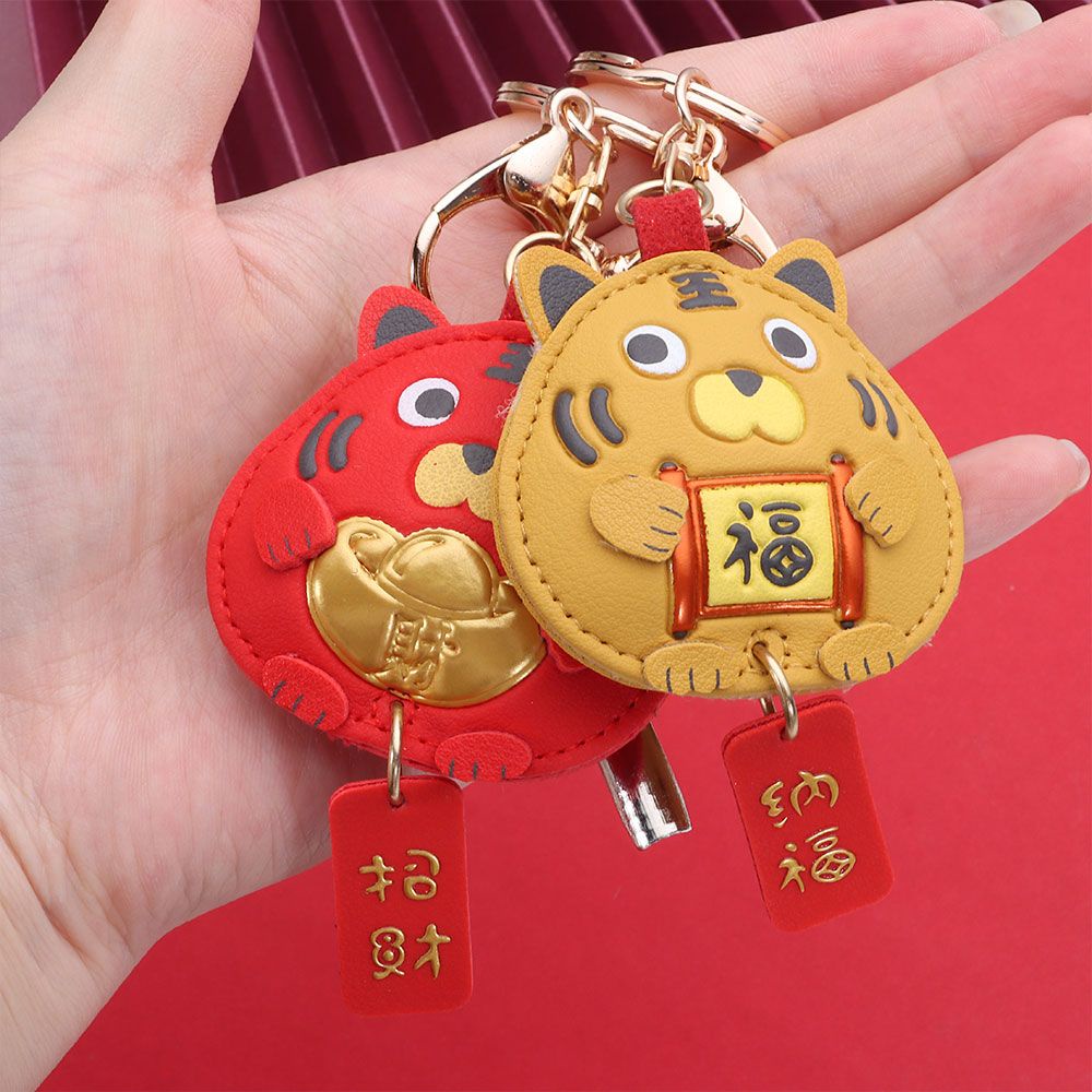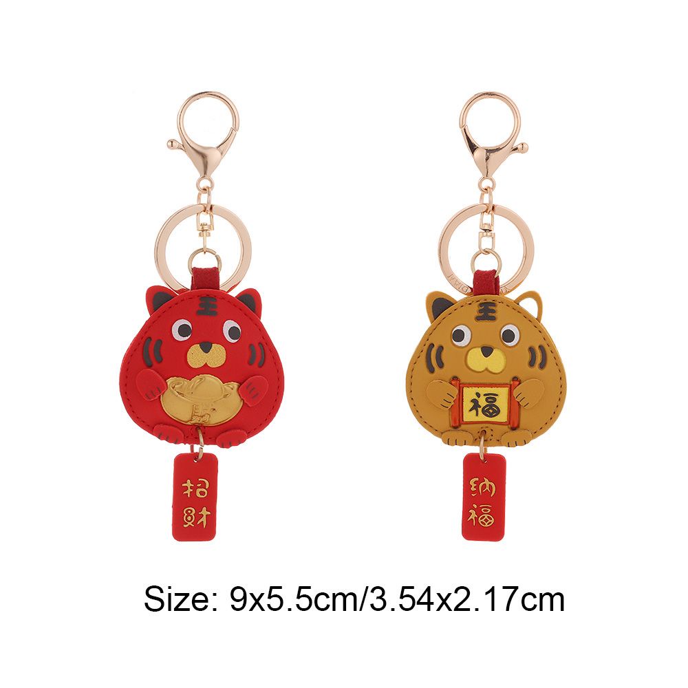 Móc khóa cặp bằng da PU hình hổ phong cách Trung Hoa mừng năm mới<br>