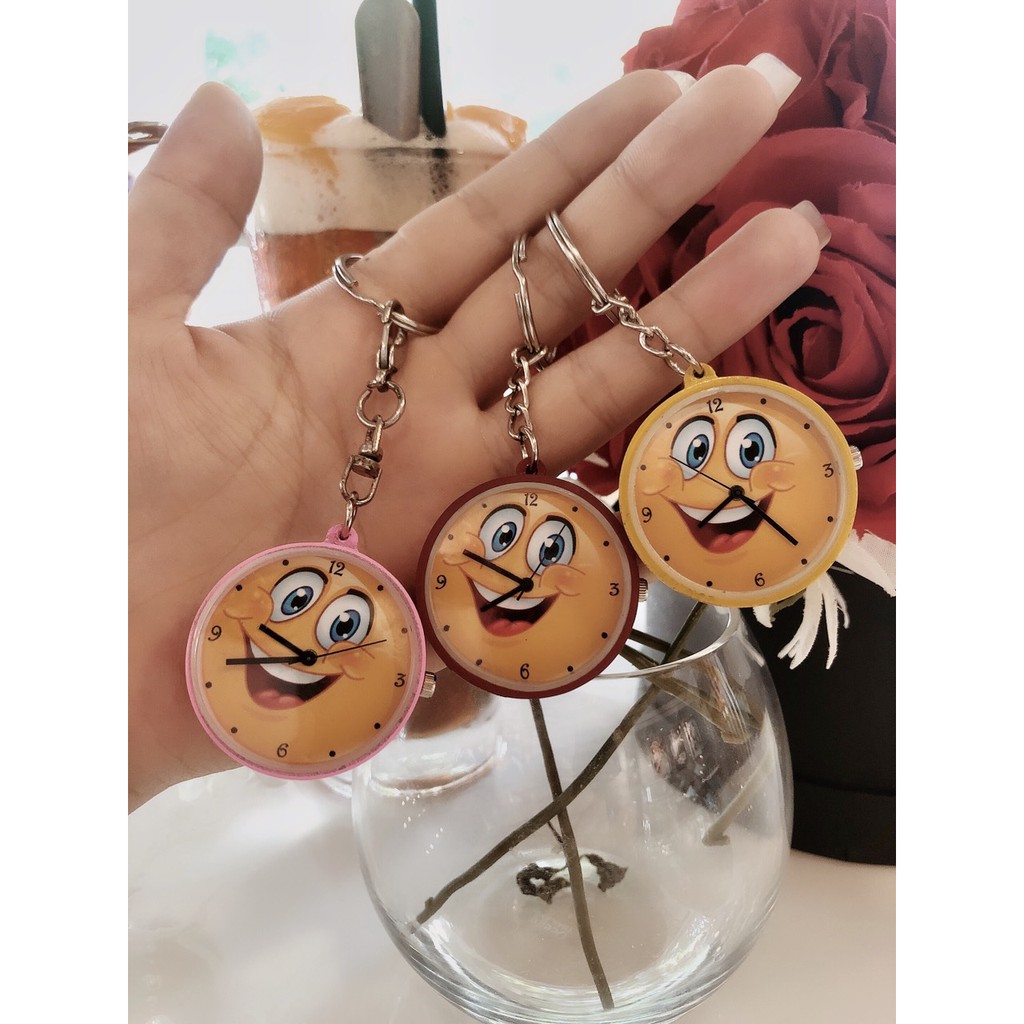 Móc khóa đồng hồ hồ hình mặt cười Ps1 nhiều màu trang trí cực đẹp. xem giờ mọi lúc mọi nơi