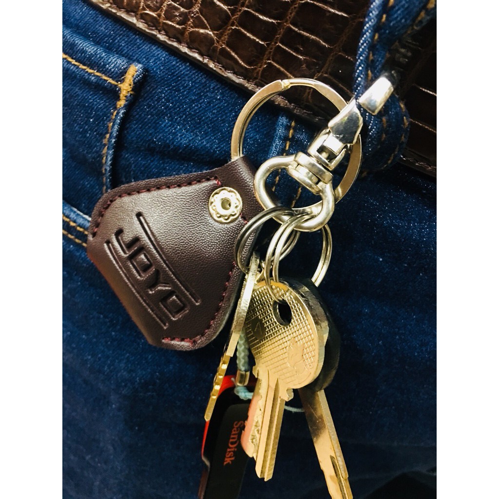 Bao da có móc treo, có thể cài vào chùm chìa khóa mang theo