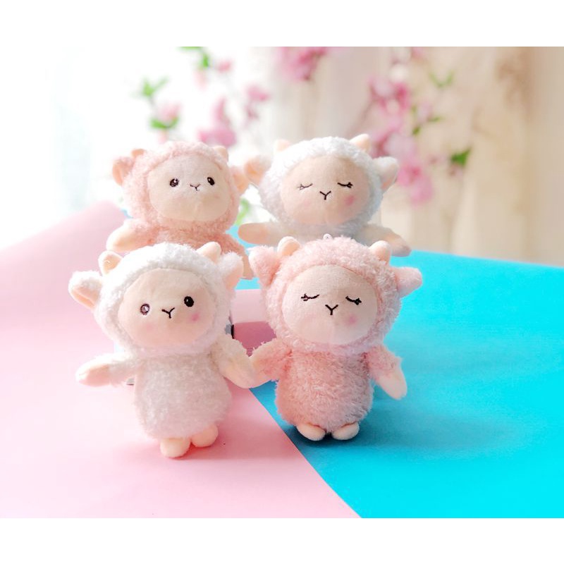 Móc khóa gấu bông treo balo túi xách cừu xinh 12CM - Thỏ Hồng