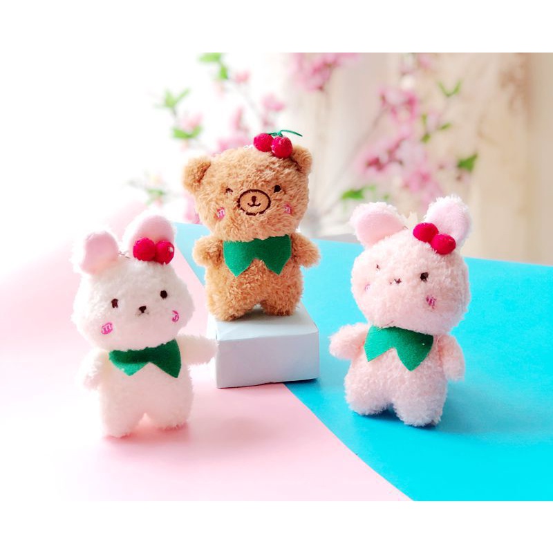 Móc khóa gấu bông treo balo túi xách thỏ đeo nơ Cherry 15CM