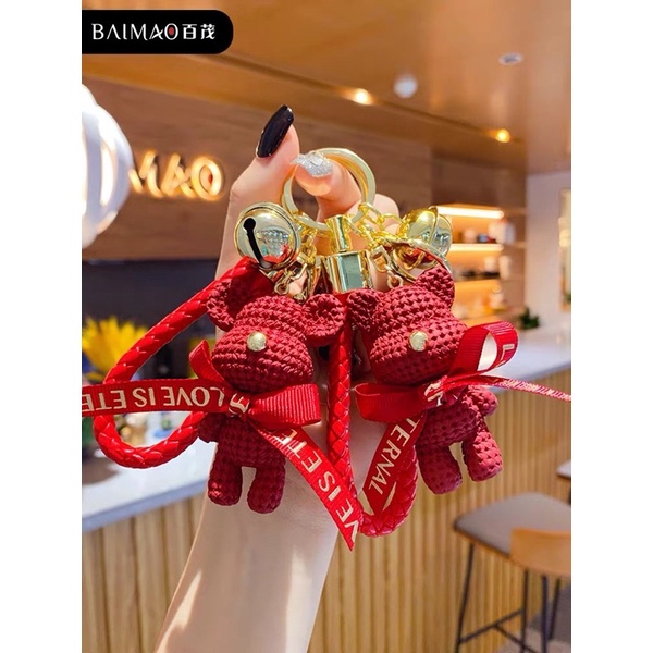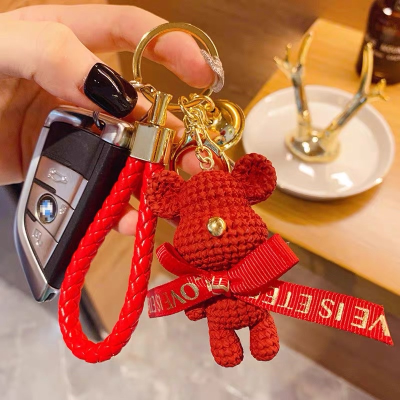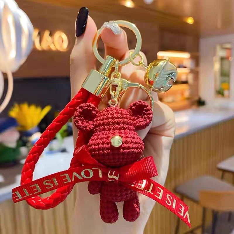 Móc khoá gấu DẠ NƠ KÈM DÂY MẪU TO MÀU ĐỎ