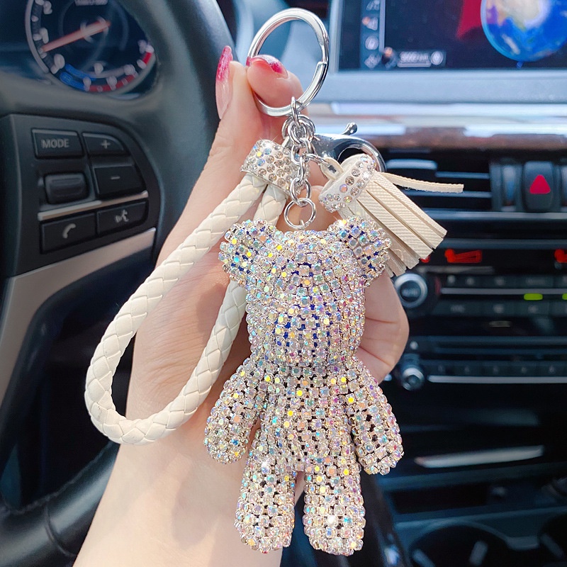 Điện Thoại & Phụ Kiện > Phụ kiện > Dây đeo điện thoại & Móc khóa || Móc khóa gấu đính đá tua rua sang chảnhCòn hàng