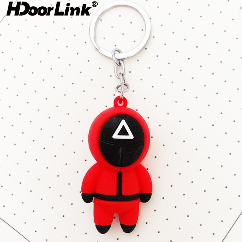 Móc khóa HdoorLink hình búp bê đeo mặt nạ Squid Game tròn/vuông/tam giác 3D làm quà tặng