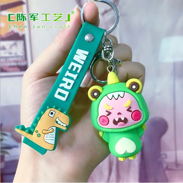 Móc khóa hình bé Khủng long, Cáo vàng, Heo xanh và Thỏ đỏ đáng yêu bằng nhựa mềm