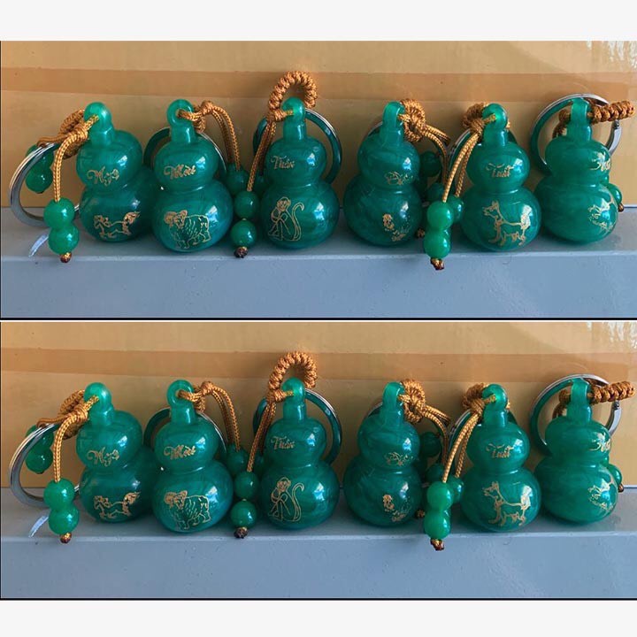 Giới thiệu móc khóa hình hồ lô bình an in con giáp màu xanh ( 1 cái )