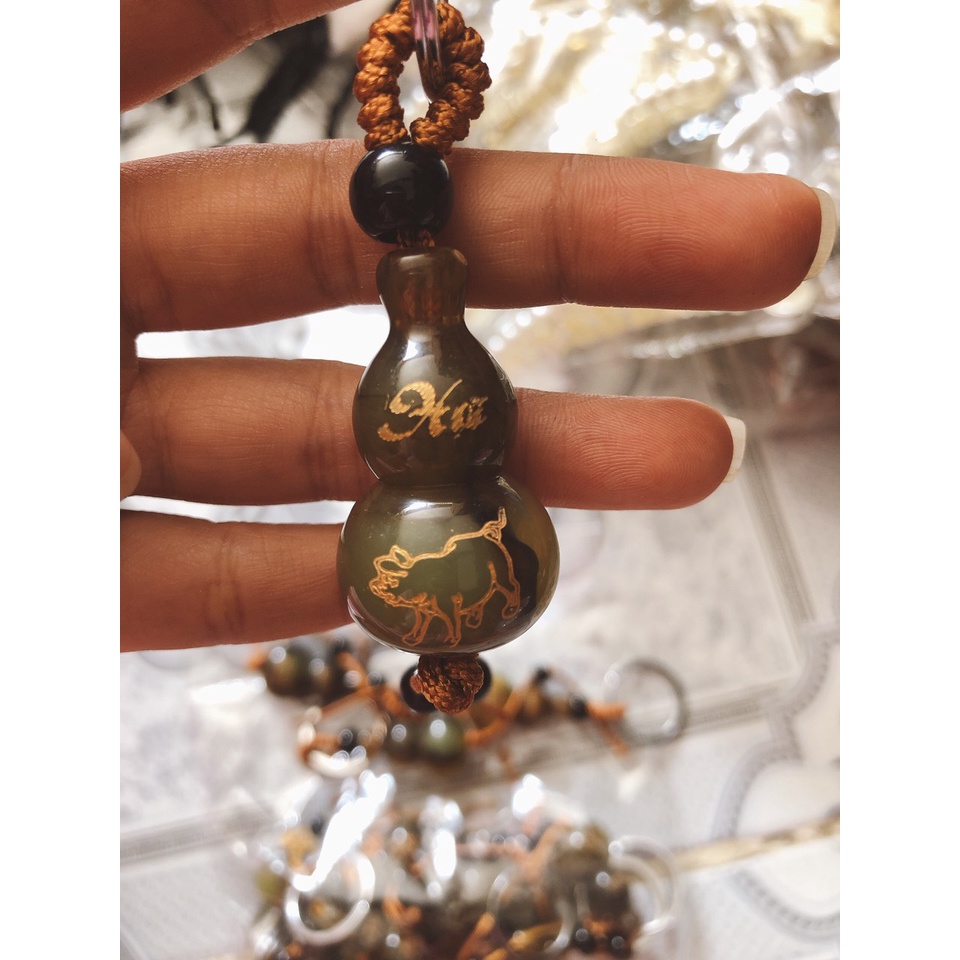 Giới thiệu móc khóa hình hồ lô bình an in con giáp ( 1 cái )