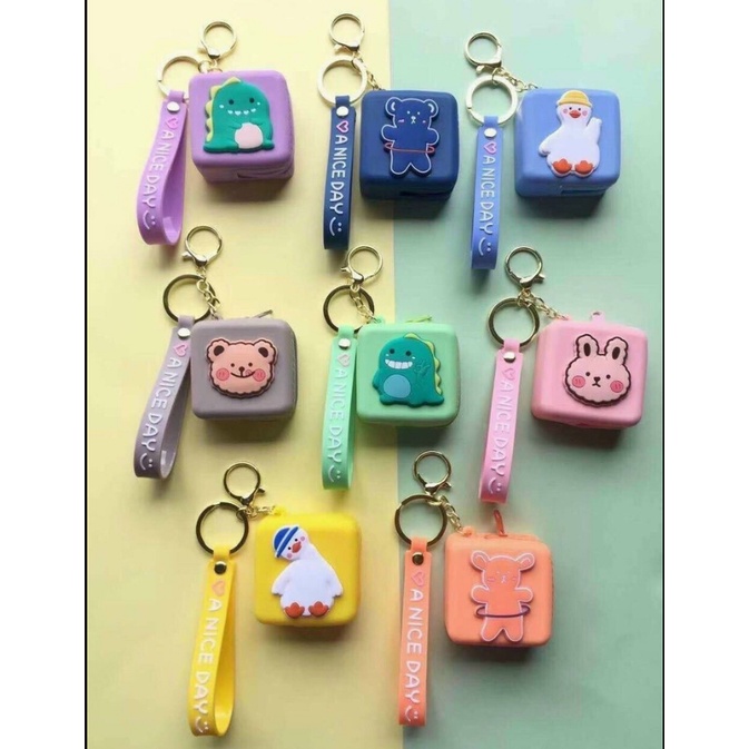 Giới thiệu Móc khóa hình túi silicon nhiều mẫu hoạt hình dễ thương - Bóp silicon treo móc khóa túi xách đựng tai nghe cáp sạc