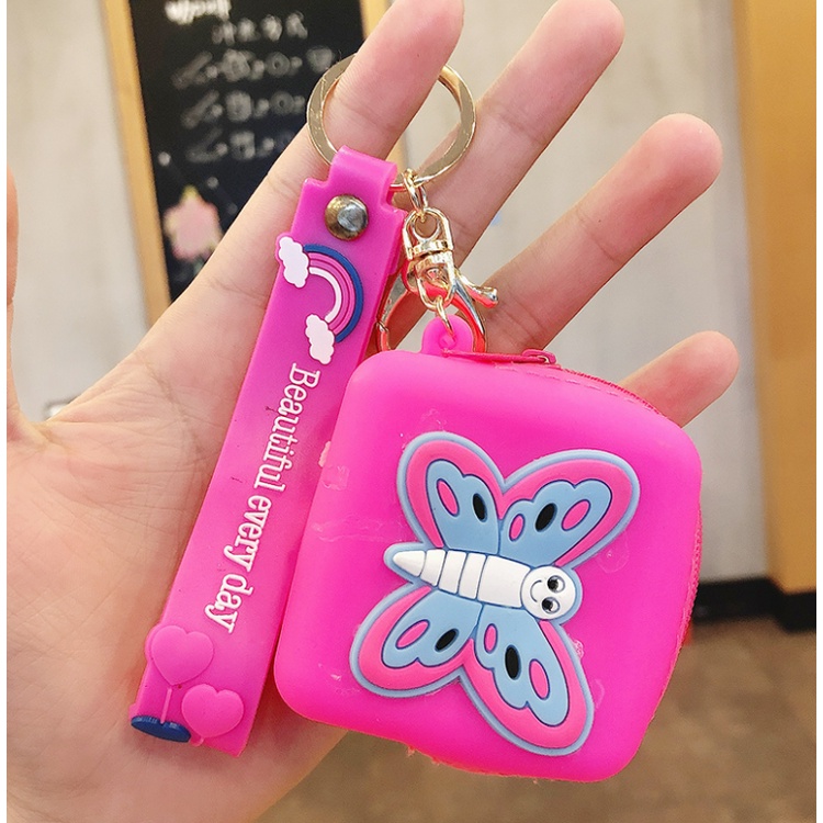 Móc khóa hình túi silicon nhiều mẫu hoạt hình dễ thương - Bóp silicon treo móc khóa túi xách đựng tai nghe cáp sạc