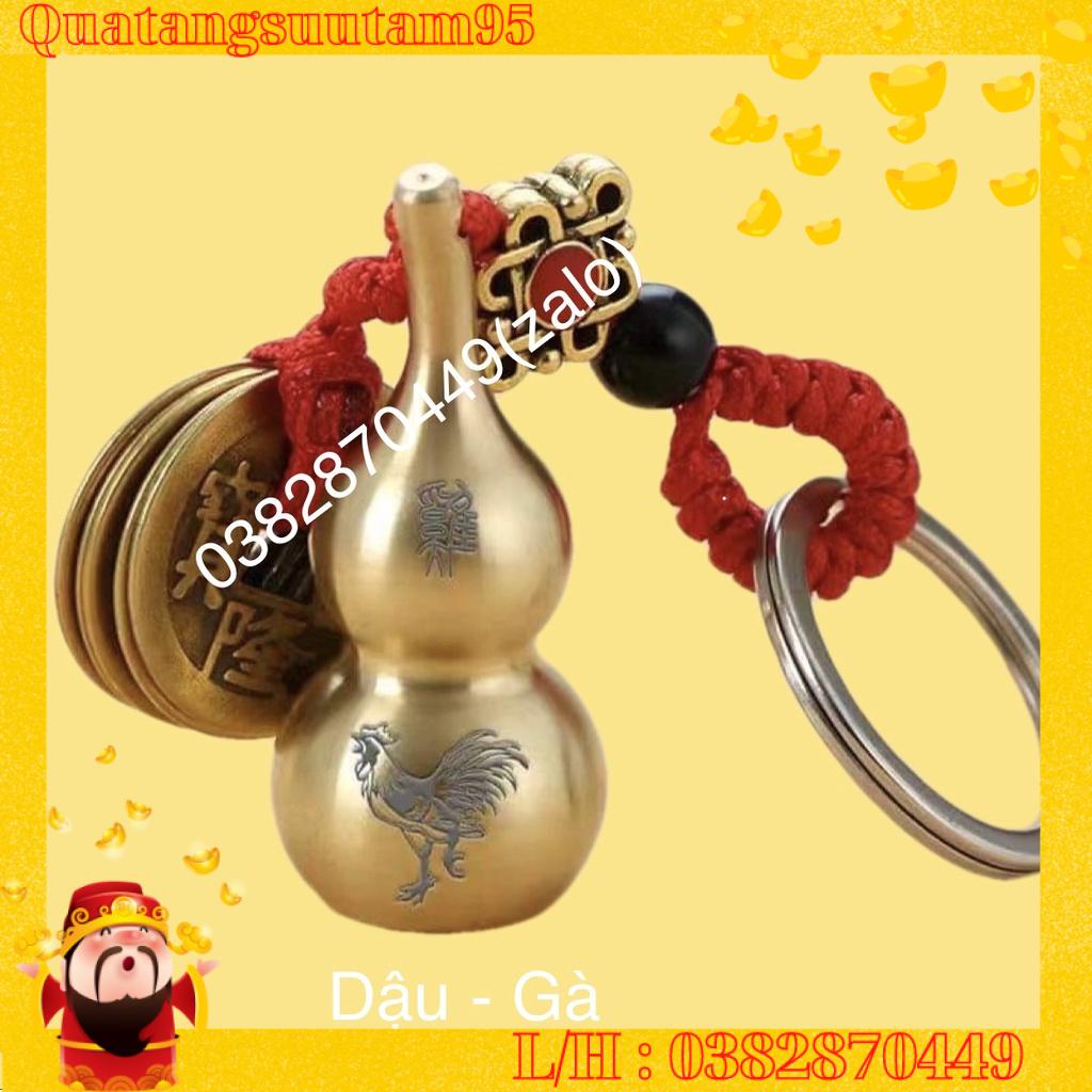 Móc Khóa Hồ Lô Kèm Xu Ngũ Đế, Khắc Hình 12 Con Giáp Hộ Mệnh Phong Thủy:Chất liệu : hồ lô và xu bằng đồng .