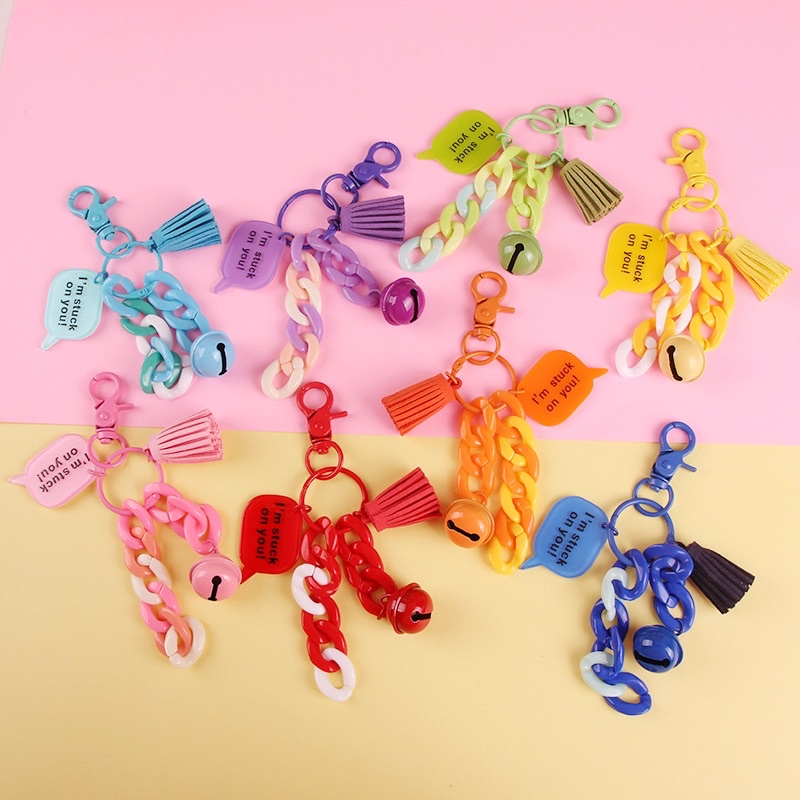 Móc khoá mix quả chuông kèm mắc xích nhiều màu dễ thương