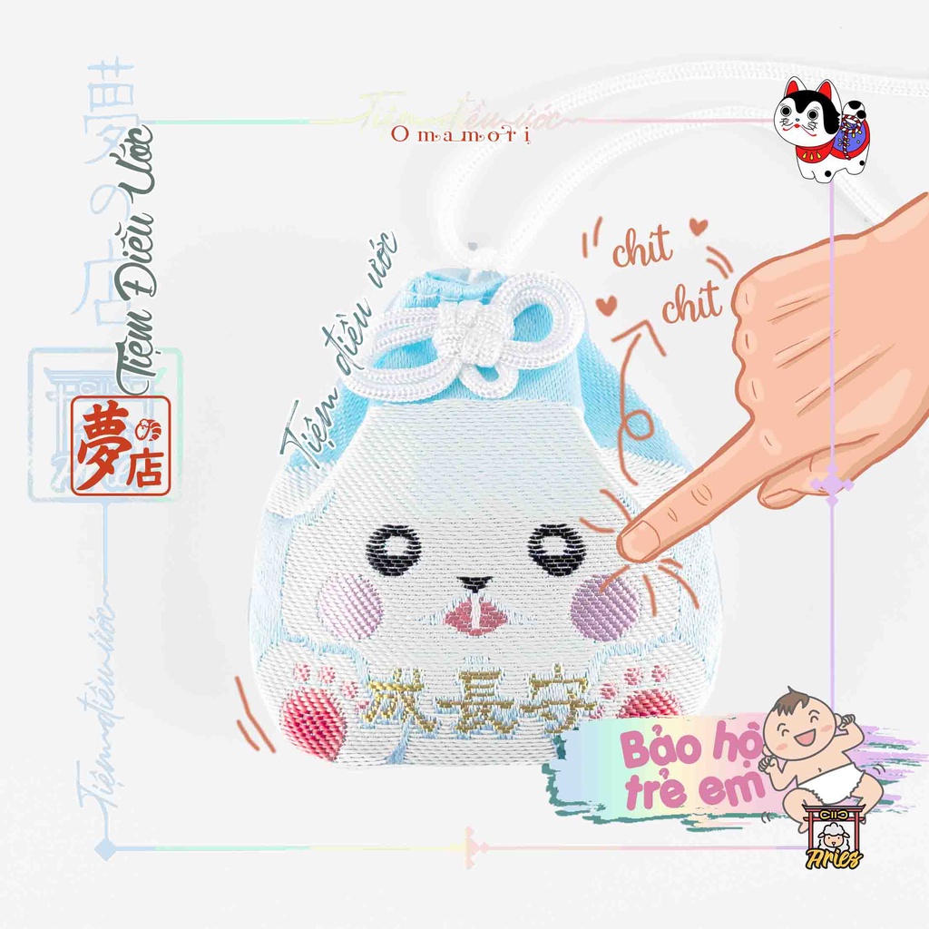 🏯 Xuất sứ: Đền thờ Thần Đạo Nhật Bản tại Nagoya, omamori thật có tên Đền mặt sau🌸 Ý nghĩa: Bảo hộ trẻ em - dành cho các bé nhỏ, 6 tuổi trở xuống, omamori này nhấn nhẹ sẽ nghe chít chít rất cưng lun