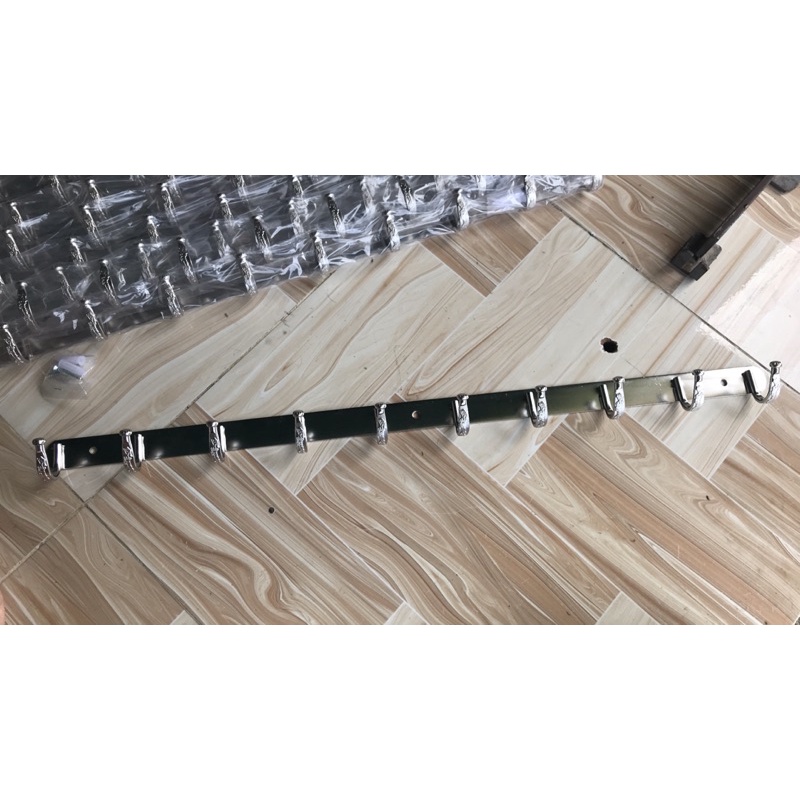 - Chất liệu: làm bằng inox, thanh đặc, không gỉ, sáng bóng- Công dụng: treo đồ, quần áo, nón, dù, chảo, nồi,...