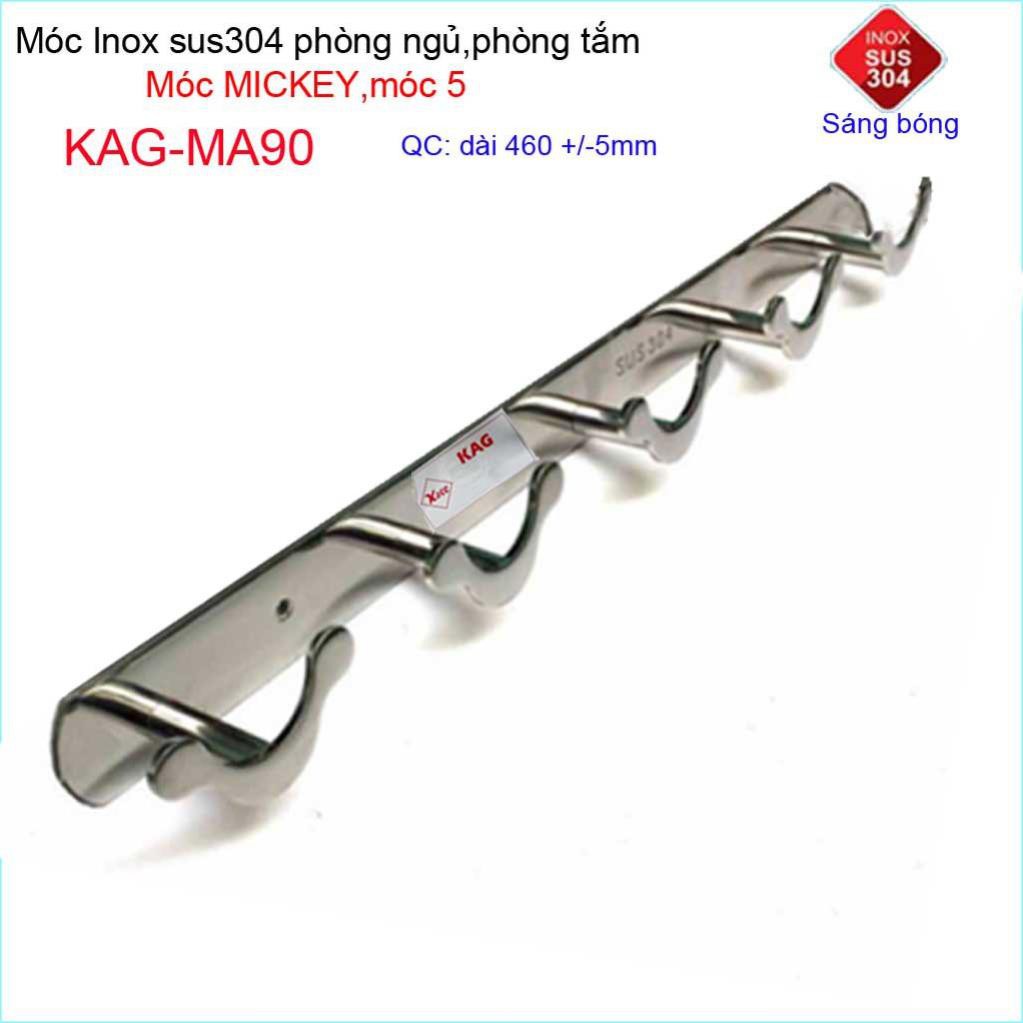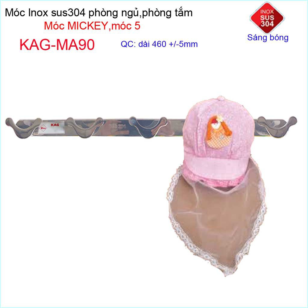Móc mickey treo quần áo inox 304 cao cấp dày, móc Kace 5 móc treo đồ nhà tắm KAG-MA90Chiều dài móc: 46cm+-0.5cm