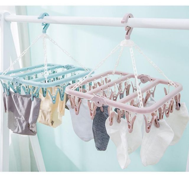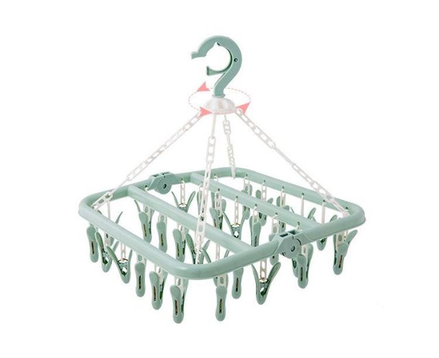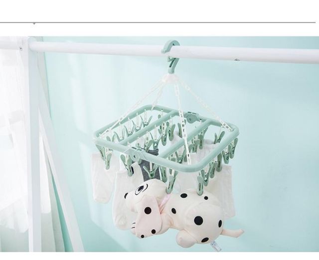 - Móc 32 kẹp giúp tăng diện tích phơi vớ, quần áo trẻ sơ sinh.- Thiết kế gấp gọn khi không sử dụng, đầu móc xoay 360 độ.